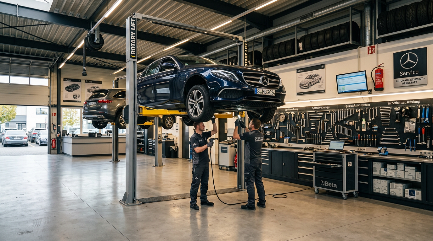 Die Kosten hängen vom Fahrzeugtyp und Umfang der Inspektion ab. Wir erstellen Ihnen vorab einen transparenten Kostenvoranschlag. In der Regel liegen Sie bei uns 30–40 % unter den Preisen einer Mercedes-Vertragswerkstatt — bei gleicher Qualität.